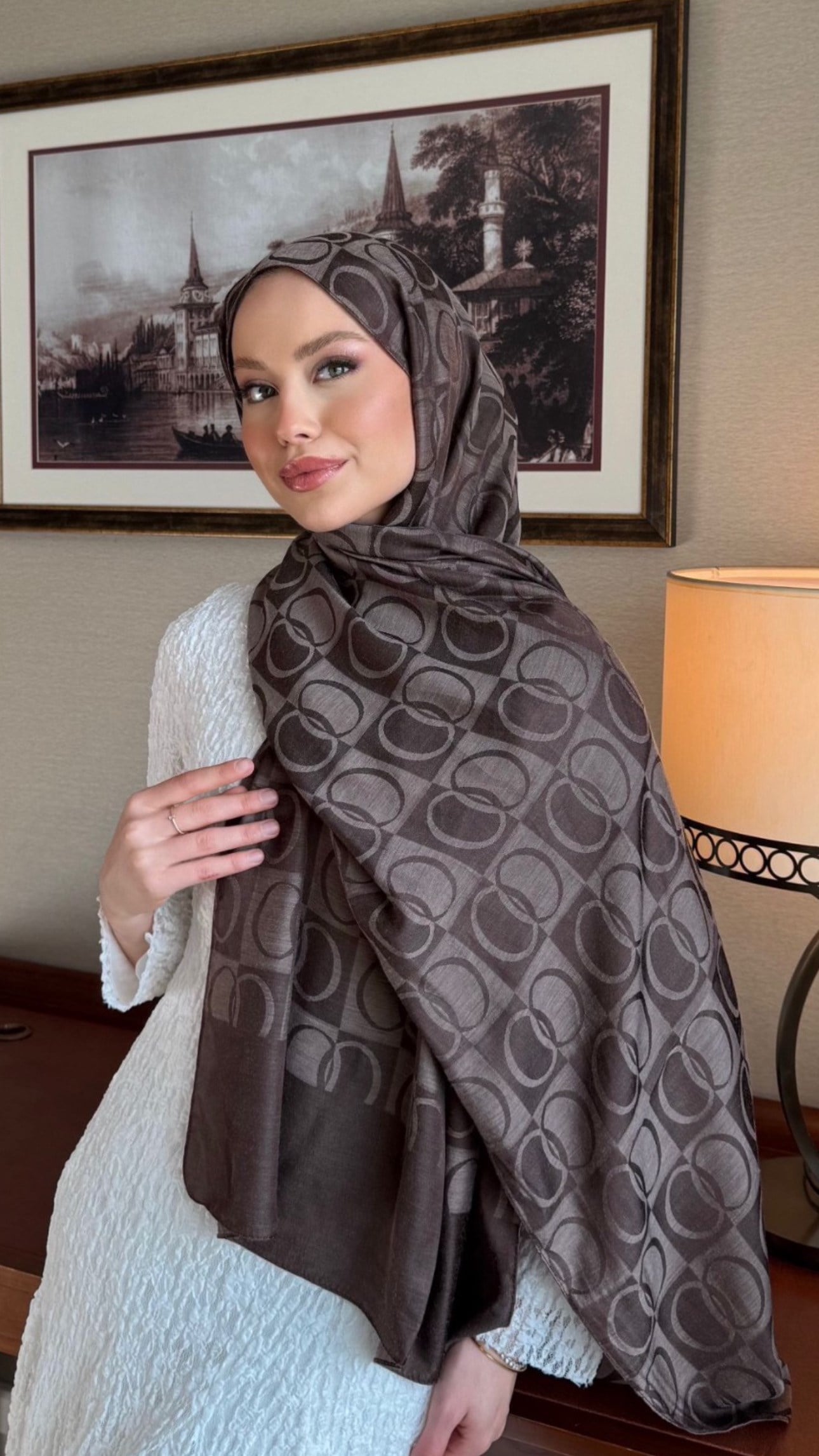 Dama Pamuk Jakar Şal Kahve