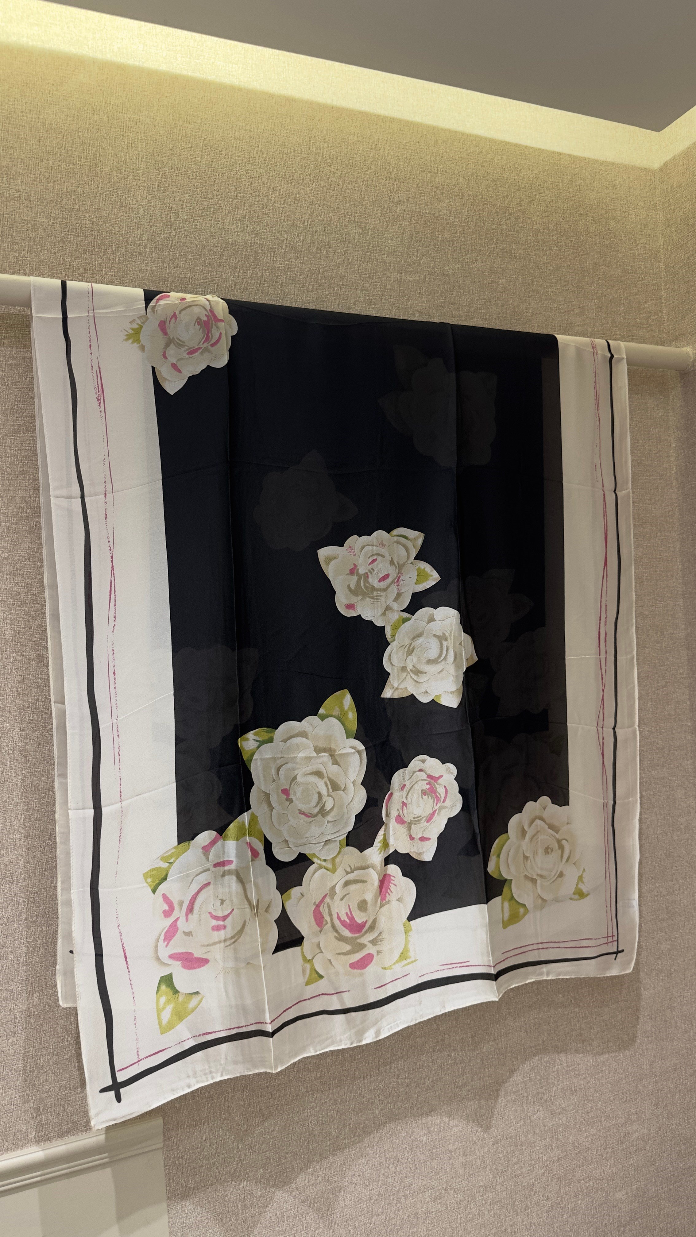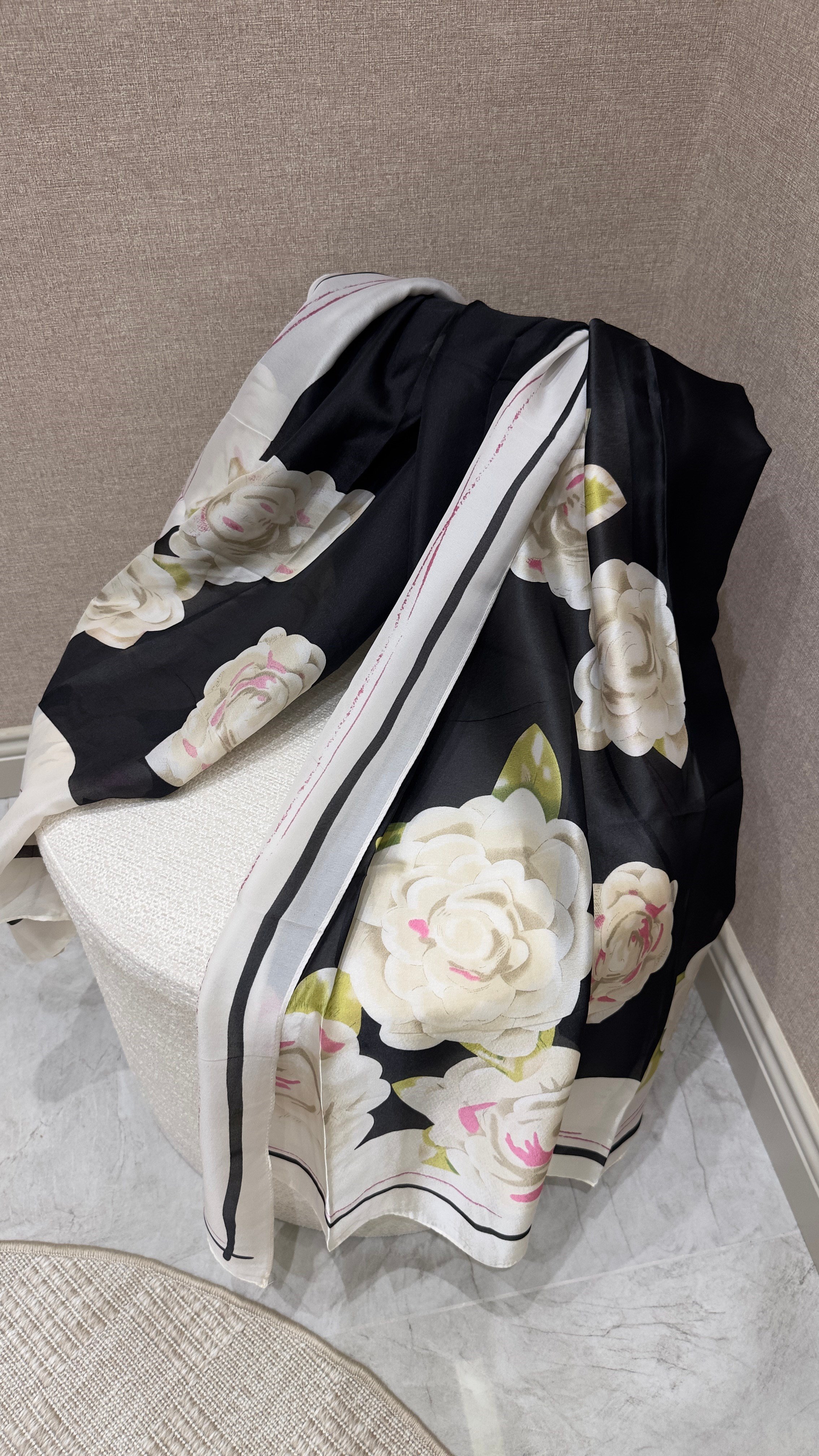 QU Gül Vual İpek Şal Siyah
