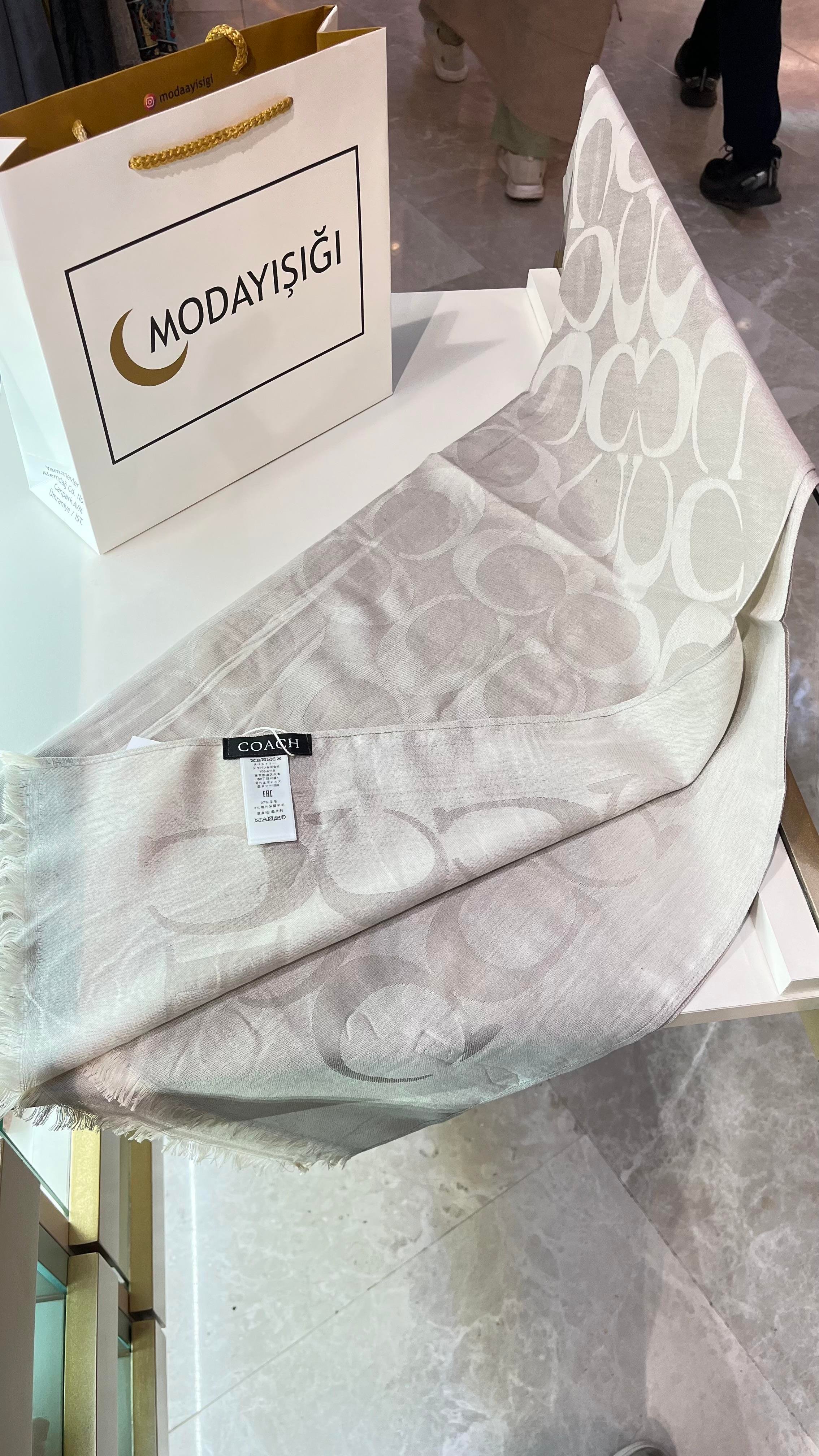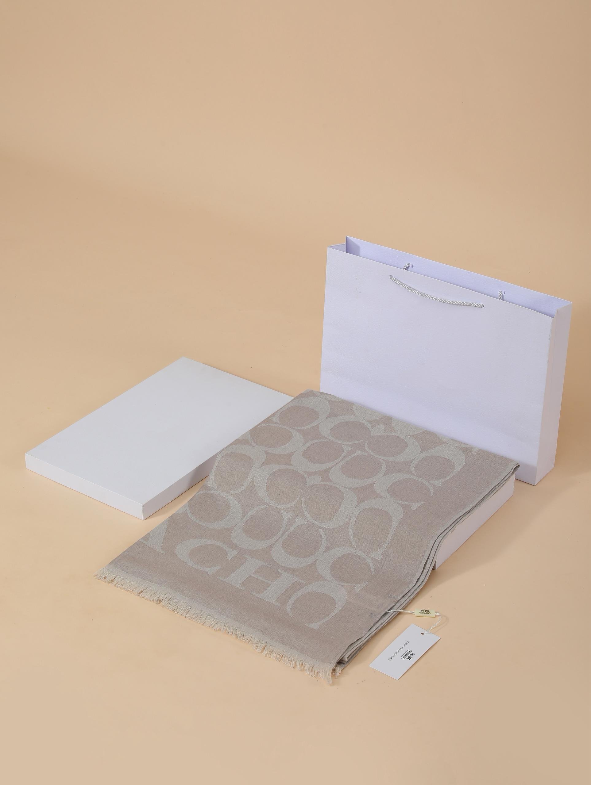 Yeni Sezon C Desen Açık Bej Yün Pamuk Şal