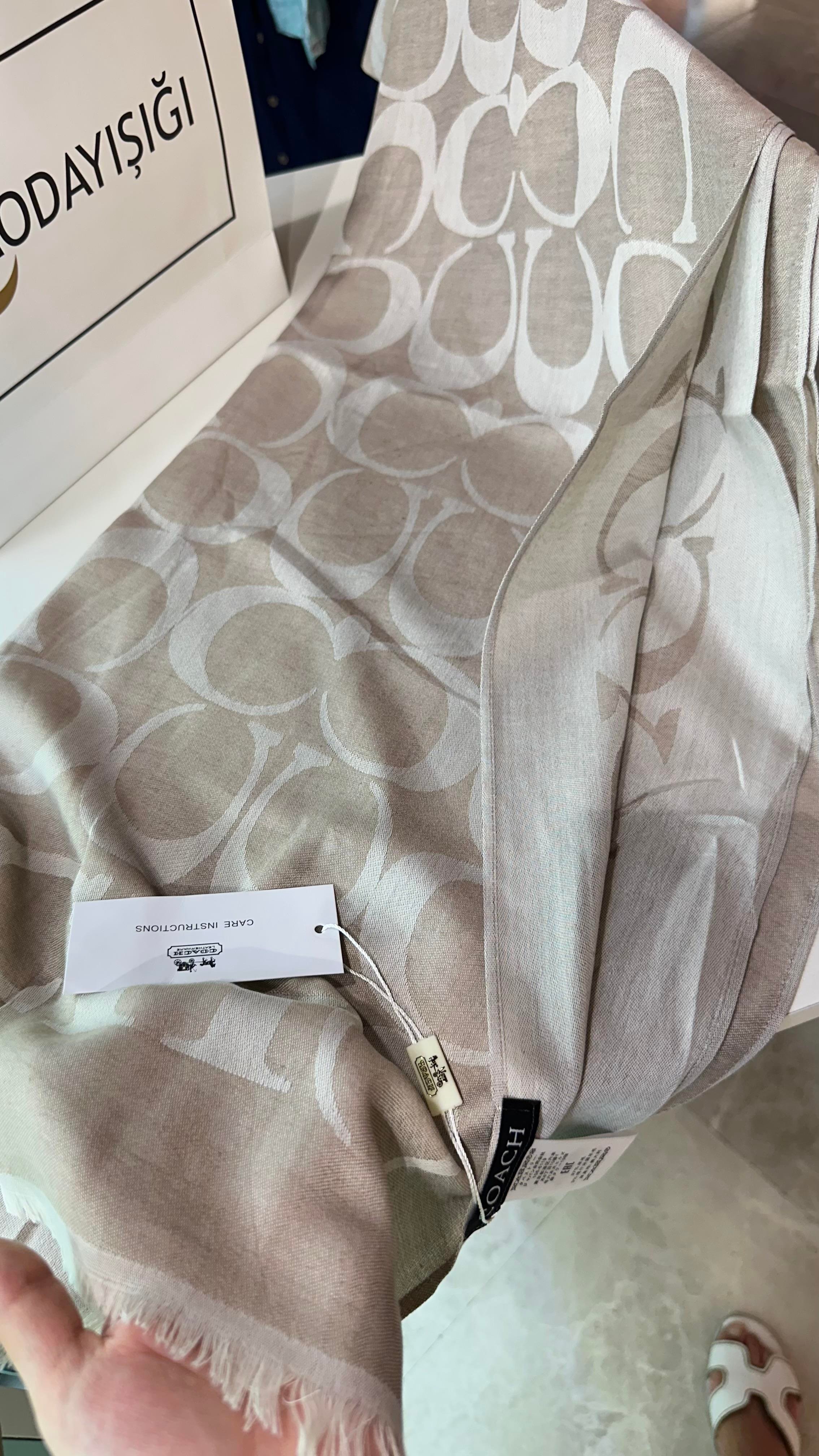 Yeni Sezon C Desen Bej Yün Pamuk Şal